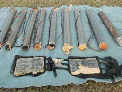 – ضبط عدد [2] مخزن للأسلحة والذخيرة بمنطقة الزوارعه والفيتات ، حيث عثر بداخلها على عدد [ “8” صاروخ محلى الصنع – صاروخ جراد – “3” قنبلة يدوية ” 2 هجومية – قنبله F1 ” – “3” دانة للقاذف RPG – حزام ناسف – “6” صندوق ذخيرة عيار نصف بوصة – صندوق ذخيره عيار “51 مم ” شرائط – “3” كجم من مادة TNT المتفجرة – مفجرات ألغام – دوائر كهربائية تستخدم لتجهيز العبوات الناسفة – “11” راديو صغير الحجم يستخدم للتجهيز عبوة ناسفه ضد الأفراد – معمل كيميائى وبه كمية من المواد الكيميائية التى تستخدم لتصنيع العبوات الناسفة والأدوات التى تستخدم بالمعامل – “2” طفاية حريق معده للإستخدام كعبوة ناسفة – “7” خزنة بندقية آلية – “2” أفارول زراعى ] إلى جانب مجموعة من الكتب والمراجع لتدريب الأفراد على إستخدام الأسلحة وتجهيز العبوات الناسفة ، فضلاً عن كمية من الأدوات الطبية ووحدة “CD Rom” وعدد “2” بطاقة رقم قومى .