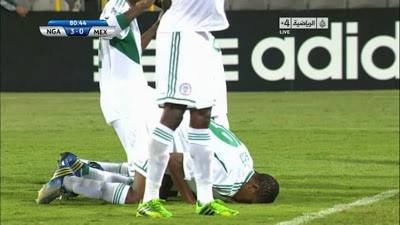 ولكن المنتخب النيجيري حسم النتيجة قبل تسع دقائق من نهاية المباراة بعد ركلة حرة من خارج المنطقة لعبها قائد الفريق موسى محمد قوية بيمناه واتجهت في الزاوية اليسرى العليا لمرمى الحارس المكسيكي راؤول جودينيو ودخلت المرمى بمساعدة القائم الأيسر لينتهي اللقاء بفوز نيجيريا بثلاثية نظيفة