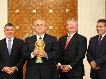استقبل الرئيس عدلي منصور، الخميس، بمقر رئاسة الجمهورية، وفد الاتحاد الدولي لكرة القدم «فيفا» بصحبة «كأس العالم»، التي تزور مصر ضمن جولة عالمية قبل انطلاق البطولة المقررة في البرازيل العام المقبل.