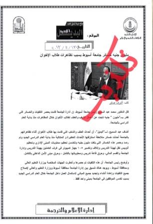 تعليقاً على الخبر المرفق تؤكد إدارة الجامعة أن ما ورد به عارٍ تماماً من الصحة ولم يقم الدكتور محمد عبد السميع رئيس الجامعة بالإدلاء بأى تصريح فى هذا الشأن سواء للمحرر أو الجريدة المنسوب لهما الخبر أو لغيرهما .