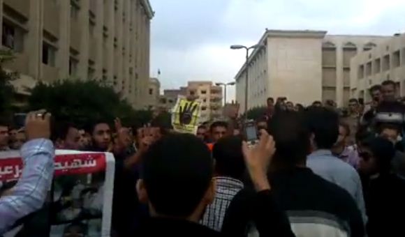 تظاهر المئات من حركة طلاب ضد الإنقلاب بكلية الشريعة والقانون بفرع جامعة الأزهر بسبرباي بطنطا صباح اليوم الأحد فى مسيرة طافت أرجاء وساحات الجامعة للتنديد بما أسموه بالإنقلاب العسكري والمطالبة بعودة المعزول للحكم ورفضا للقانون التظاهر الجديد والتأكيد على ضرورة إخلاء قيادات جماعة الإخوان المحظورة قضائيا المقبوض عليهم .