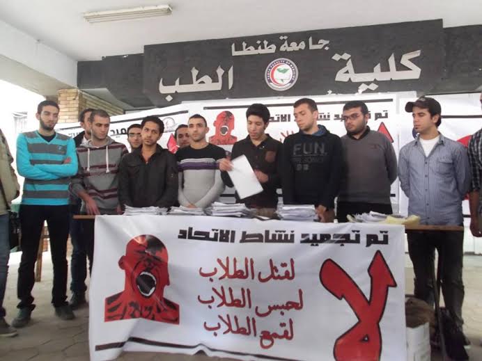 نظمت جبهة دولة الطلاب بجامعة طنطا منذ قليل مؤتمرا صحفيا بحضور مجلس اتحاد طلاب جامعة طنطا وعدد من الحركات الثورية داخل الجامعة منها حركة طلاب ضد الانقلاب وحركة طلاب الوسط وحركة طلاب مصر القوية وحركة طلاب الميدان التابعة لحزب الدستور .
