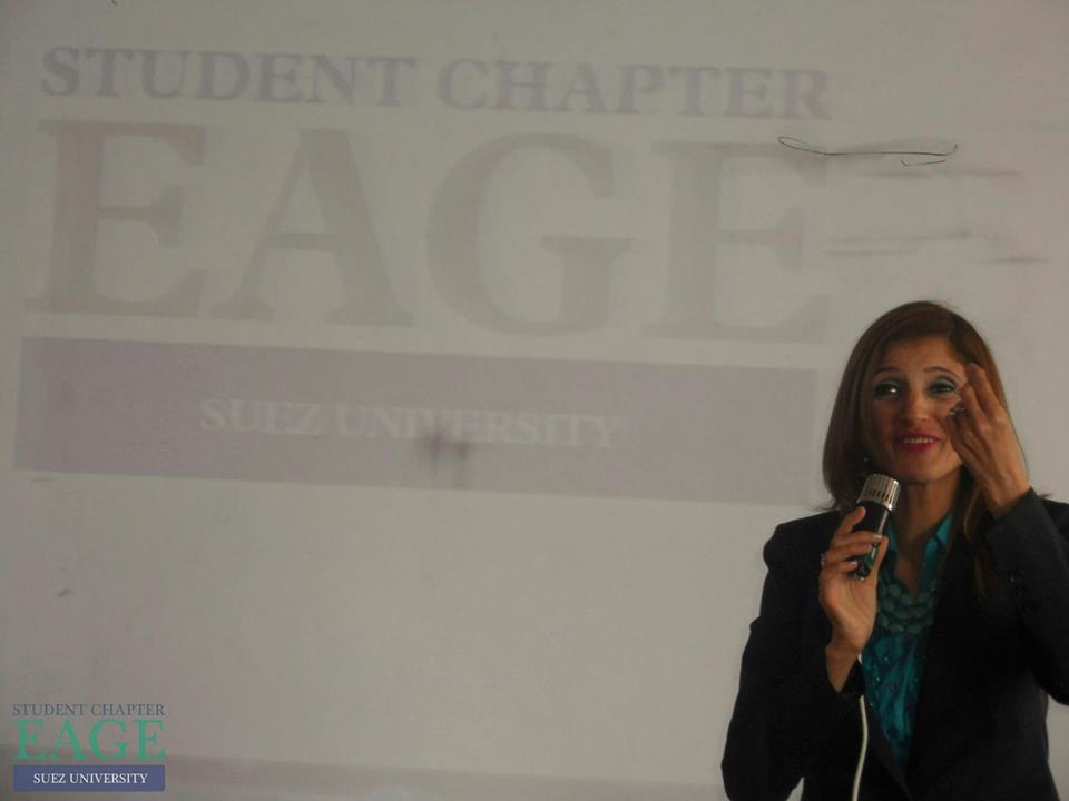 قامت الرابطة الأوروبية للعلماء الجولوجيين و المهندسين فرع السويس “EAGE SU” باستضافة د.هيام عزمي النجار بكلية هندسة البترول و التعدين جامعة السويس; حيث عقدت ندوة شبابية عن التنمية البشرية تحدثت فيها عن قوة التحكم بالذات و تنمية الثقة و الاعتزاز بالنفس.