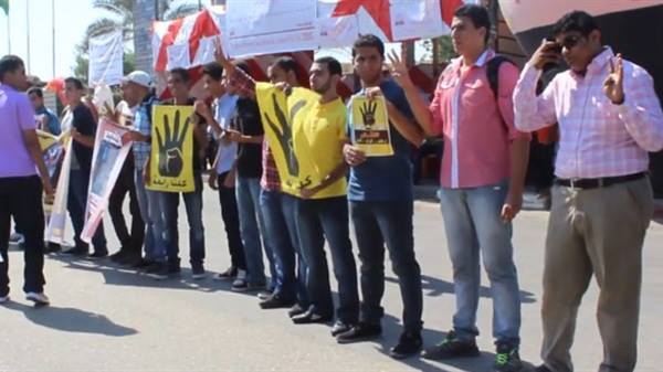 وردد الطلاب هتافات مناهضة لقوات الجيش والشرطة ومؤسسة الرئاسة.