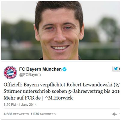 ومن جهته قال رئيس النادى كارل هانز رومنيجه على موقع البايرن “نحن سعداء جدا باتمام هذه الصفقة (…) فهو من أفضل المهاجمين فى العالم وسيعد إضافة قوية للفريق”.