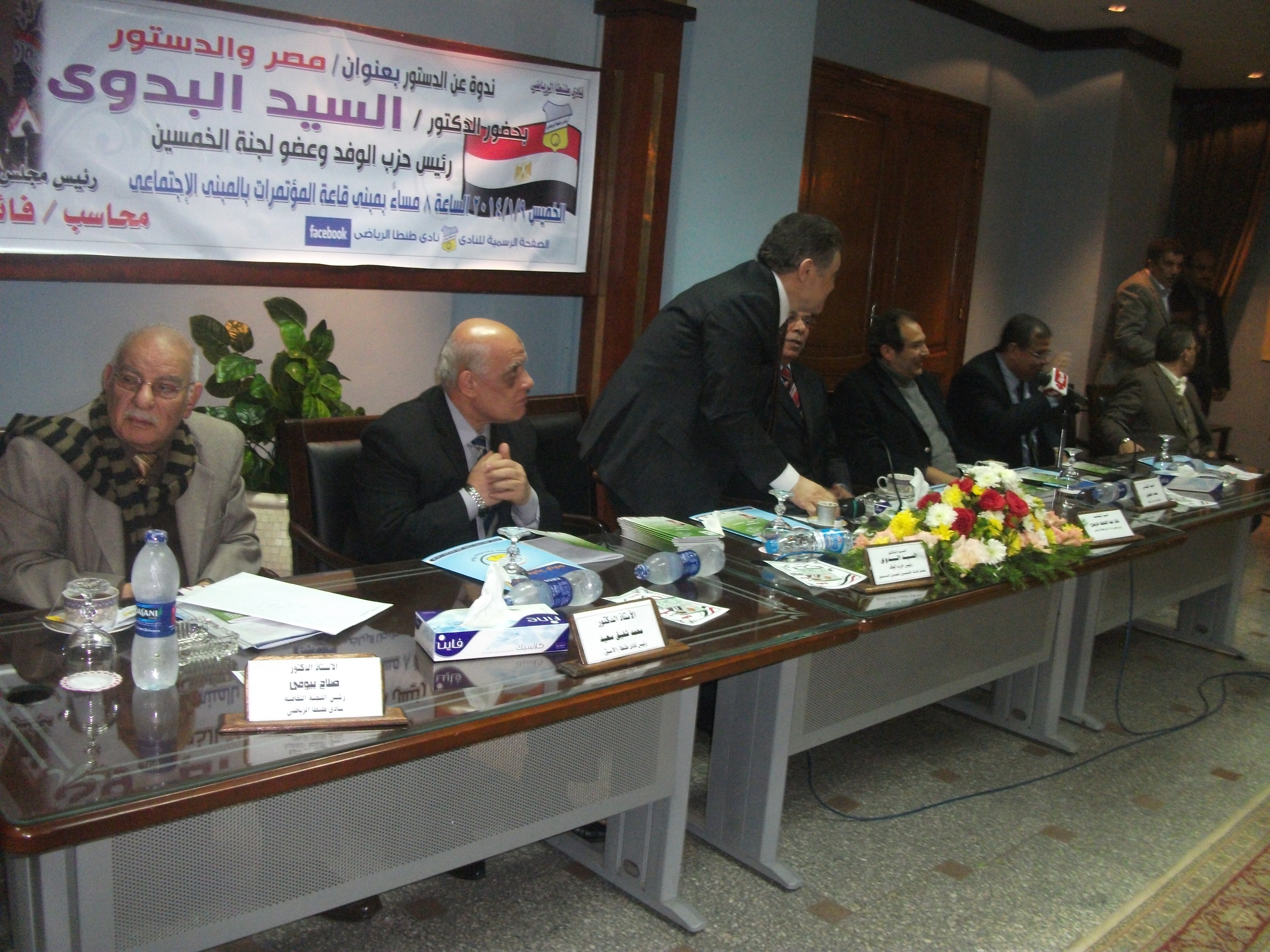 جاء ذلك في الندوة التي أقامتها نادي طنطا الرياضي تحت عنوان ” مصر والدستور ” مساء اليوم بحضور حسام الخولي السكرتير العام المساعد لحزب الوفد ومصطفى النويهي والمستشار حسين خليل عضوى مجلس الشعب السابقين عن محافظة الغربية و المحاسب فائز عريبي رئيس نادي طنطا الرياضي .