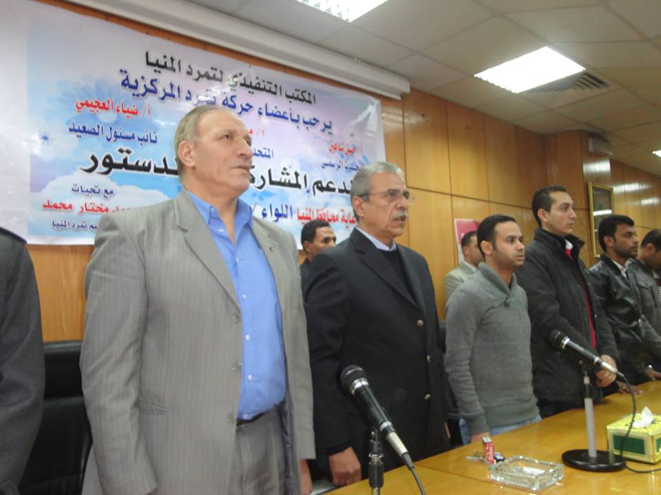 جاء ذلك خلال مؤتمر حملة تمرد بديوان عام محافظة المنيا لشرح مواد الدستور بحضور محمود بدر مؤسس الحركة وحسن شاهين المتحدث الاعلامى للحركة.