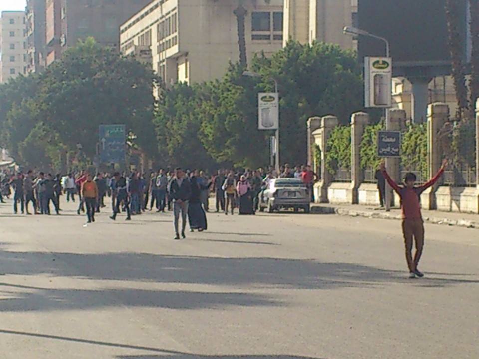يشهد محيط جامعة القاهرة الان مصادمات بين عشرات من طلاب جامعة القاهرة وقوات الداخلية وقامت القوات باطلاق كثيف من قنابل الغاز لتفريق المتظاهرين واغلق علي اثر هذه الاشتباكات شارع بين السرايات وميدان النهضة والطريق المؤدي لميدان الجيزة ولا توجد انباء حتي الان عن وجود اي اصابات
