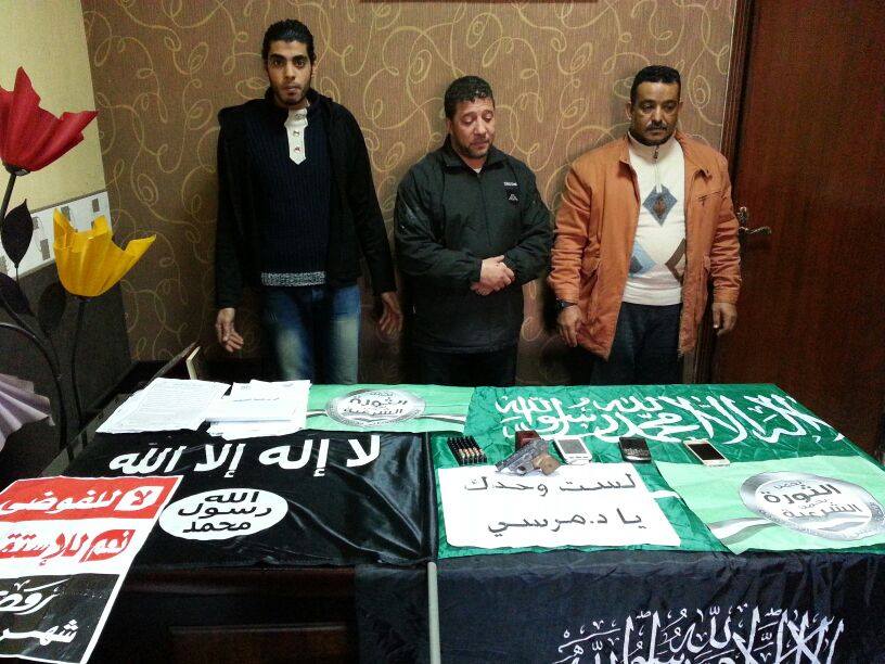 فى إطار سياسة وزارة الداخلية الهدافة إلى القضاء على الأرهاب و من خلال توجيهات السيد اللواء / أمين عز الدين – مساعد الوزير لأمن الأسكندرية بالتعامل الفورى و الحازم مع كل أشكال الخروج عن القانون و بث الطمأنينة فى نفوس المواطنين و بناءً على تلك الخطة رصدت المتابعة الأمنية قيام بعض انصار جماعة الأخوان الأرهابية بتنظيم عدد 5 مسيرات فى شرق و غرب المدينة عقب صلاة الجمعة مرددين هتافات معادية للقوات المسلحة و الشرطة و تحث على العنف ضد أجهزة الدولة حاملين منشورات بها علامات رابعة و دعوات للعنف ضد اجهزة الدولة معطليين للحركة المرورية و المواصلات العامة و الخاصة و على الفور تدخلت قوات القول الأمنى و تمكنت من تفريق تلك المسيرات و ضبط عدد 15 من المشاركين فى تلك المسيرات و بحوزتهم اسلحة نارية و خرطوش و طلقات نارية و أعلام لتنظيم القاعدة و كمية من زجاجات المولوتوف و الألعاب النارية و أقنعة واقية من الغاز و كمية من المنشورات .