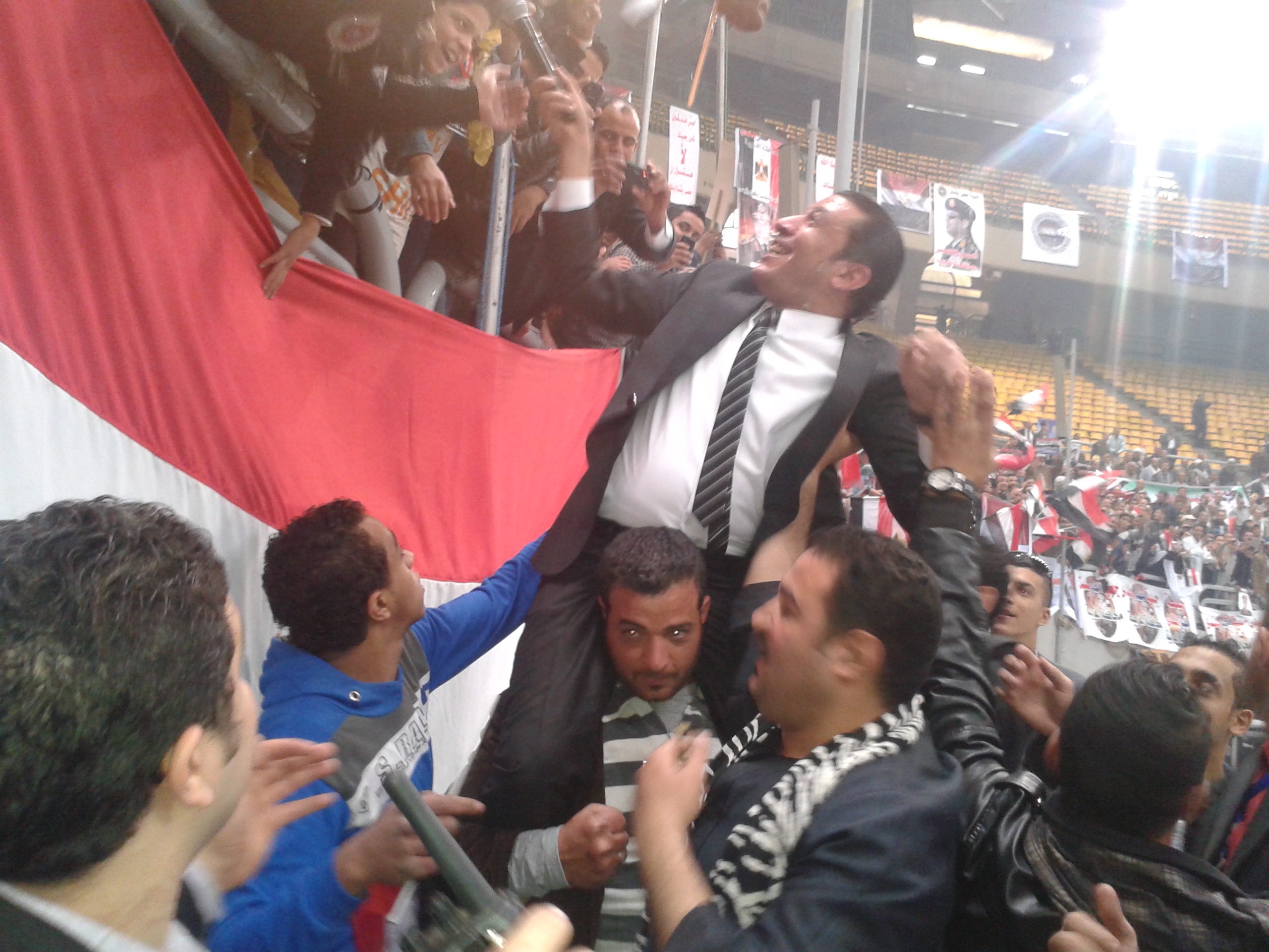 في احتفالية جبهة “مصر بلدي” اليوم والتي اقيمت بالصاله المغطاه اشعل المطرب مصطفي كامل حماس الحضور باغنيته “تسلم الايادي” حيث طافت به الحشود محمولا علي الاعناق جنبات الصاله مرددين ورائه كلمات الاغنيه.