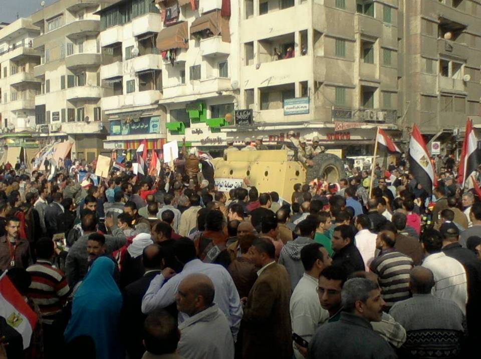 احتشد المئات من اهالي دمياط في ميدان الساعة احتفالا بذكرى ثورة 25 يناير وسط اجواء الفرحة رافعين اعلام مصر وعلى انغام تسلم الايادي وقد قام بعض رجال الجيش بالانضمام اليهم لاستكمال فرحتهم وقد قام الاهالي بالترحيب بهم.