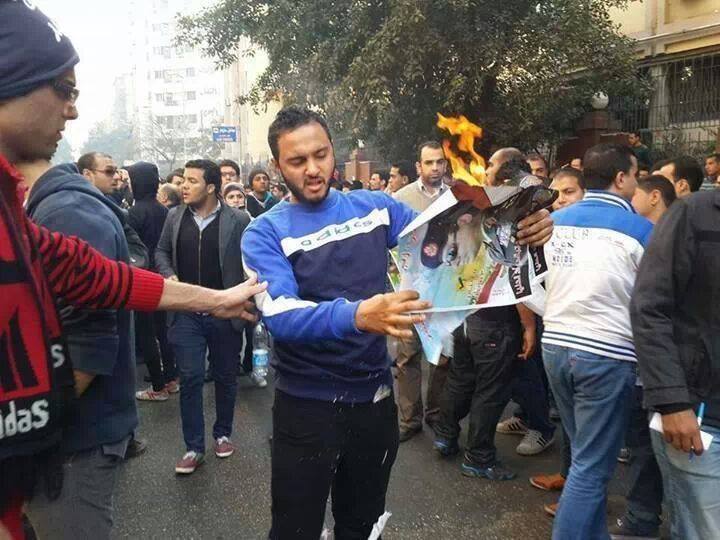 انصار الجماعه يحرقون صور الفريق السيسي امام نقابة الصحفيين