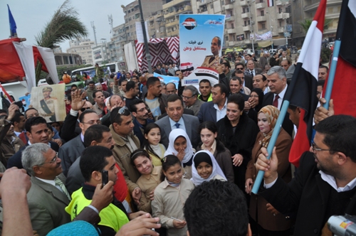 حيث تم استعراض سيارات الزهور بالوحدات المحلية وحملة الاعلام من الشباب والرياضة وطلبة وطالبات المدارس المختلفة كما تم استعراض المسيرات الحاشدة والمؤيدة لوحدة الصف وتضافر جهود رجال الشرطة والقوات المسلحة والشعب فى يد واحدة لحماية مكتسبات الثورة والحفاظ على مسيرة الأمن والاستقرار .
