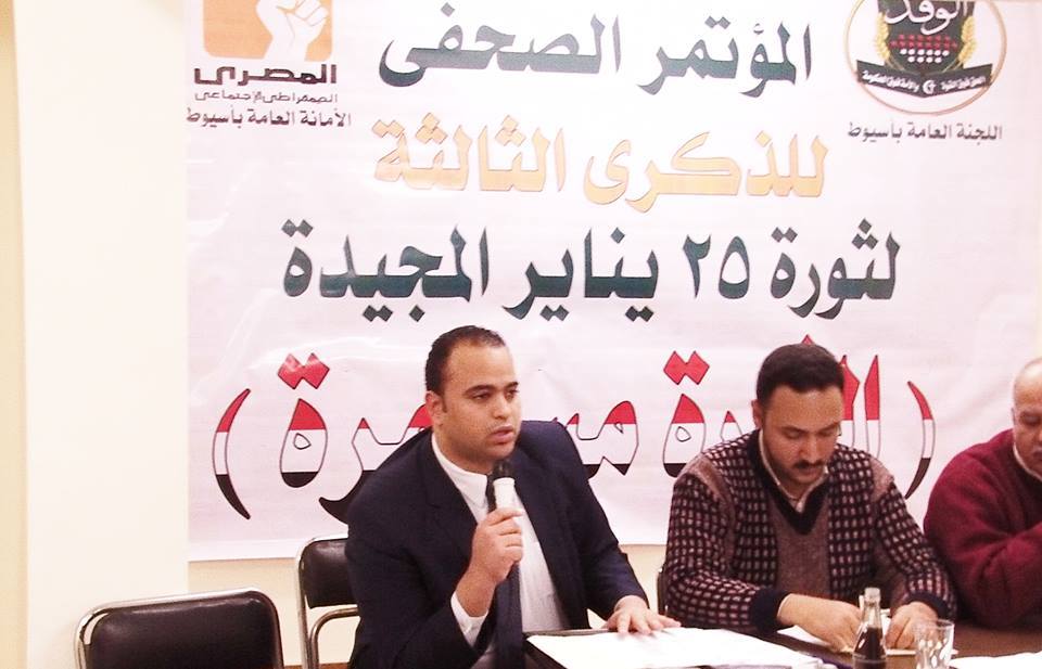 عقد حزبا الوفد والمصري الديمقراطي بأسيوط، امس ، مؤتمرًا في الذكرى الثالثة لثورة يناير للتأكيد على مطالب ثورة يناير المجيدة وأنه لا تصالح مع من تلوثت أيديهم بدماء المصريين ونهبوا أموال الشعب سواء من رموز الحزب الوطني المنحل أو جماعة الإخوان الإرهابية، وأصدرا بيانًا مشتركًا حول الأحداث الجارية وتقييمهم لخارطة الطريق .