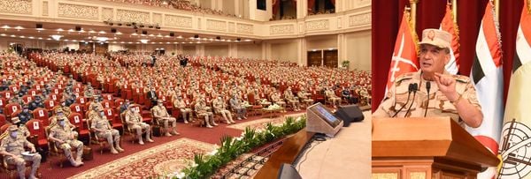 ونقل القائد العام للقوات المسلحة تحيات وتهنئة السيد الرئيس عبد الفتاح السيسي رئيس الجمهورية القائد الأعلى للقوات المسلحة للقادة والضباط لتوليهم الوظائف القيادية بمستوياتها المختلفة والتي تعتبر مسئولية كبرى وضعتها القيادة العامة للقوات المسلحة في أعناقهم من أجل الحفاظ على الوطن وصون مقدساته.
