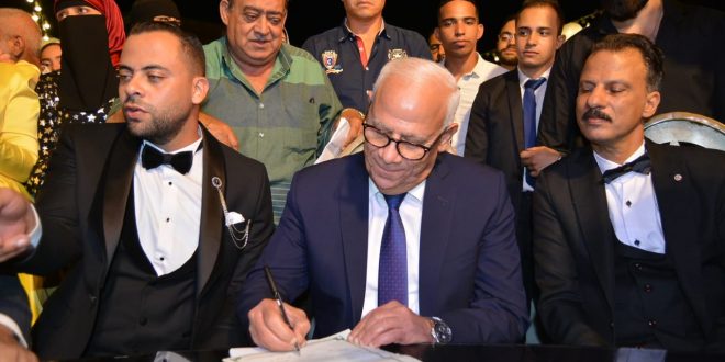 وبادر اللواء عادل الغضبان، بتقديم التهنئة للشاب علي زفافه ، وشهد المحافظ على عقد قران الشاب ومشاركته عددآ من الصور التذكارية خلال مراسم الزفاف