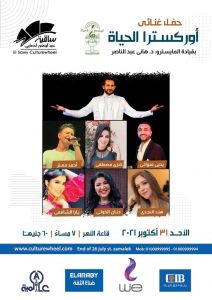 ينظم “أوكسترا الحياة” بقيادة الدكتورة أمل جمال, حفل غنائي كبير 31أكتوبر., بساقية الصاوي, احتفالا بذكري انتصارات أكتوبر المجيدة.