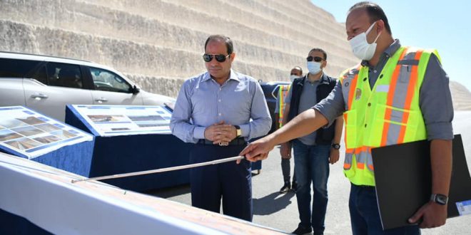 كما تفقد الرئيس السيسي, كذلك الكوبري المار اعلى تقاطع طريق ام القمر مع طريق القطامية / العين السخنة، وقد توقف لمناقشة العاملين والقائمين علي المشروع، كما حرص سيادته علي كتابة كلمات التقدير علي لوحة المشروع جاء بها : “خالص تقديري وشكري لهذا الجهد العظيم في انشاء هذا المحور الهام والحمد لله رب العالمين”.