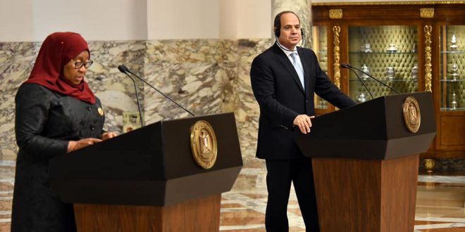 ألقي الرئيس عبد الفتاح السيسي, كلمة خلال المؤتمر الصحفي المشترك مع رئيسة جمهورية تنزانيا, رحب خلالها بالرئيسة التنزانية, وأكد علي عمق الروابط التي تجمع بين البلدين, وفيما يلي نص الكلمة: