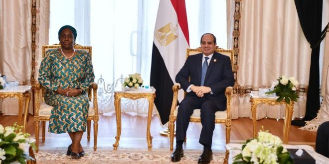 التقى الرئيس عبد الفتاح السيسي اليوم في العاصمة الإدارية الجديدة مع السيدة شيليشي كابويبوي، سكرتير عام منظمة الكوميسا.