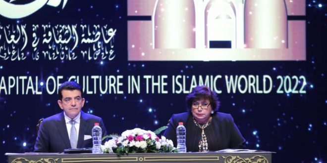 فى البداية رحبت وزيرة الثقافة بالضيوف في مدينة “القاهرة”عاصمة المحبة والتاريخ والسلام وقالت نلتقي اليوم لإعلان انطلاق فعاليات اختيار القاهرة عاصمة للثقافة في دول العالم الإسلامي 2022، في إطار البرنامج الذي تنفذه المنظمة الإسلامية للتربية والعلوم والثقافة (إيسيسكو)، برئاسة الدكتور سالم بن محمد المالك، المدير العام للمنظمة، صاحب الجهد الكبير والرؤية الثاقبة في تطوير منظومة العمل بالمنظمة على النحو الذي يحقق مستهدفاتها ويعمق من مكانتها الكبيرة من بين مؤسسات الوطن العربي المعنية بهذا المجال ، واكدت ان اختيار القاهرة عاصمة للثقافة لدول العالم الاسلامي يأتي كونها واحدة من أقدم واعرق العواصم العربية الشاهدة على عمق التاريخ بفضل ماتمتلكه من زخم تراثي هائل من خلال آثارها المادية والفكرية، ومتاحفها المتنوعة التي تضم بين جدرانها العديد من المعالم القديمة والحديثة، وبما تحويه من تنوع ثقافات وفنون تعبر عن كافة الحضارات عبر التاريخ من فرعونية ويونانية ورومانية وقبطية وإسلامية وغيرها ، مشيرة إن هذه المناسبة التي نحن بصددها الآن، تحمل بين طياتها العديد من الرسائل الإيجابية التي يتمثل أهمها في حرص وزارة الثقافة المصرية على تنفيذ استراتيجية الدولة في ظل اهتمام فخامة الرئيس عيد الفتاح السيسي بكافة القضايا المتعلقة بصون وحفظ التراث المصري على كافة الأصعدة، وبذل كافة المساعي التي من شأنها الترويج لقيمة هذا التراث وعراقة مصر بين دول العالم اجمع، كما يُعد بمثابة التأكيد على مكانة مصر التراثية والتاريخية بين دول العالم، وماتزخر به من مفردات تدل على امتلاكها لهوية حضارية عريقة، حيث تُعد القاهرة أكبر المدن التراثية صاحبة الريادة بمفرداتها الأثرية المعبرة عن الملامح الأساسية للحضارة الإنسانية بوجه عام، والحضارة الإسلامية العريقة على نحو خاص، وباعتبارها ملتقى للثقافات عبر الأزمنة والعصور ، واوضحت ان هذا الاختيار داعما ومكرسا للهدف المشترك الذي تسعى الوزارة والمنظمة إلى تحقيقه والمتمثل في تعميق الأواصر الثقافية وتعزيز التواصل الثقافي وابراز قيم التعايش والتسامح وتقديم صورة حقيقية عن هذه المضامين التي تشملها الحضارة الإسلامية، وستظل القاهرة كما كانت منذ القدم، عاصمة الثقافة والأدب، عاصمة الفكر والفن، عاصمة الإلهام والخيال، عاصمة الموسيقى والأوبرا، عاصمة المعمار والتراث وعاصمة الـ1000 مئذنة، وهي مركز إشعاع ثقافي وفكري وحضاري عريق ، وتابعت ، لا يسعني إلا ان أقدم جزيل الشكر للجهد المضني والمتميز للدور الفعال الذي تقوم به منظمة العالم الإسلامي للتربية والعلوم والثقافة (إيسيسكو)، في تنفيذ برنامجها المتفرد بالاحتفال بالعواصم المتنوعة في دول العالم الإسلامي، وماتستهدفه من تعزيز مجالات التعاون الثقافي البناء وتعميق العلاقات بين شعوبنا، وذلك باستثمار كافة الأدوات والأساليب المشتركة الفعالة وماتملكه هذه الدول من مفردات حضارية عريقة، والتأكيد على قدرة القوى الناعمة في إحداث التقارب الوجداني بين الشعوب، وجسرًا لتبادل الرؤى والإبداعات المتنوعة ، واكدت حرص وزارة الثقافة المصرية على وضع تصورات جادة وطموحة فيما يتعلق بنوعية الأنشطة والفعاليات المقرر تنفيذها بأجندة “اختيار القاهرة عاصمة الثقافة في العالم الإسلامي 2022″، والذي يبلغ عددها ما يقرب من خمسين فعالية ثقافية وفنية وفكرية وابداعية تجسد هذه الأنشطة اهم معالم الهوية المصرية بمشتملاتها الثقافية والتراثية المتعددة، وبالتعاون مع منظمة الإيسيسكو ، وبمشاركة جميع الهيئات والقطاعات بالوزارة ، وتمنت للجميع متابعة مثمرة نستطيع بموجبها تحقيق كافة مستهدفات هذا الاختيار وتفعيل المزيد من التقارب الوجداني والحضاري بين شعوبنا .