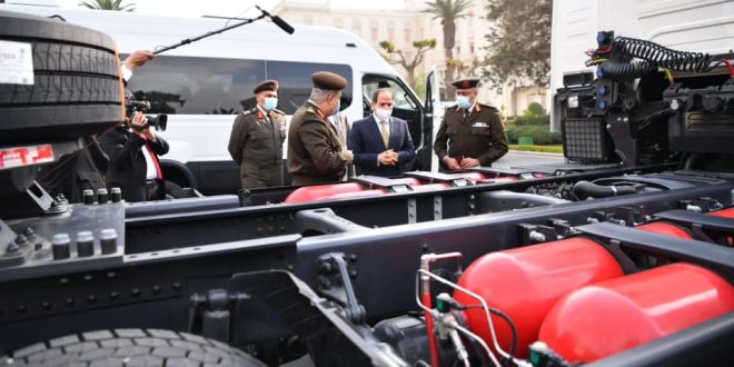 تفقد الرئيس عبد الفتاح السيسي اليوم, عدد من المركبات متعددة الاستخدام والتي تعمل بالغاز الطبيعي والكهرباء، وذلك في إطار اهتمام سيادته بمنظومة النقل باستخدام الطاقة النظيفة، وبحضور كلٍ من الفريق كامل الوزير وزير النقل، واللواء كمال وفائي مدير إدارة المركبات بالقوات المسلحة، واللواء أ.ح محمد عبد الفتاح مساعد مدير إدارة المركبات للتسليح، والمهندس كريم غبور رئيس مجلس إدارة شركة MCV.