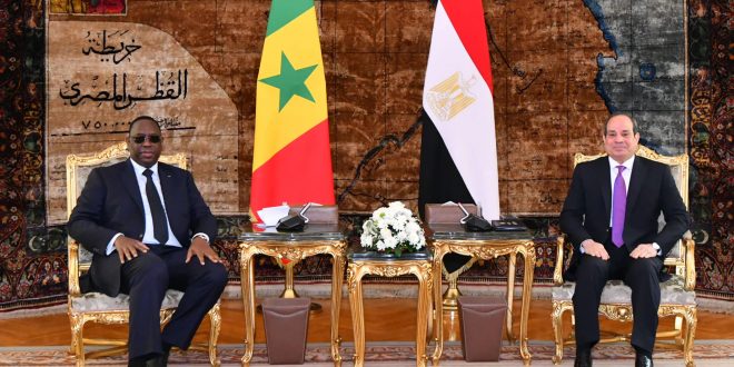 كما أكد الرئيس “ماكي سال” الحرص على الاستفادة من الجهود والتجربة والرؤية المصرية لتعزيز العمل الأفريقي المشترك وقيادة دفة الاتحاد الأفريقي، خاصةً في ضوء قرب تسلم السنغال لرئاسة الاتحاد خلال القمة الأفريقية السنوية المقبلة، إلى جانب ما تشهده القارة الأفريقية بشكل عام، ومنطقتي الساحل وشرق أفريقيا على وجه الخصوص، من تحديات متلاحقة ومتزايدة، الأمر الذي يفرض تكثيف التعاون والتنسيق مع مصر وقيادتها على خلفية الثقل المحوري الذي تمثله مصر في المنطقة والقارة بأسرها على صعيد صون السلم والأمن، وكذا المواقف المصرية الهادفة إلى تحقيق الاستقرار الإقليمي، والتي دوماً ما تنعكس على الدعم المصري الكبير لمختلف دول القارة على شتى الأصعدة.