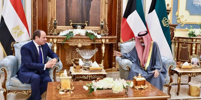من جانبه؛ رحب سمو الأمير نواف الصباح بالرئيس السيسي, في الكويت، مشيداً بالروابط الأخوية الوثيقة والتاريخية التي تجمع بين البلدين، ومعرباً عن تقديره للجهود المصرية الداعمة للشأن الكويتي على كافة الأصعدة، فضلاً عن إسهام الجالية المصرية في عملية البناء والتنمية بالكويت في مختلف المجالات، مع التأكيد على حرص الكويت على تعزيز أطر التعاون الثنائي الراسخة مع مصر فى مختلف المجالات خلال الفترة المقبلة، بما فيها من خلال زيادة الاستثمارات الكويتية في مصر واستغلال الفرص الاستثمارية المتاحة بها.