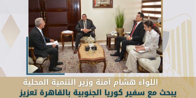 وشدد وزير التنمية المحلية على اهتمام الحكومة المصرية بالاستفادة من التجربة التنموية الكورية العظيمة في مجالات التنمية الاقتصادية والاجتماعية وعدد من المجالات الحيوية الأخرى وخاصة مجالات عمل وزارة التنمية المحلية وذلك في ظل العلاقات الجيدة بين البلدين والتي شهدت تطوراً كبيراً في عهد الرئيس عبدالفتاح السيسى والرئيس موون جاي إن، رئيس جمهورية كوريا الجنوبية .