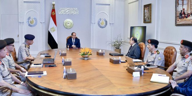 اجتمع الرئيس عبد الفتاح السيسي اليوم مع الفريق أول محمد زكي وزير الدفاع والإنتاج الحربي، واللواء أمير سيد أحمد مستشار رئيس الجمهورية للتخطيط العمراني، واللواء أ.ح هشام سويفي رئيس الهيئة الهندسية للقوات المسلحة، واللواء أحمد الشاذلي رئيس هيئة الشئون المالية للقوات المسلحة، واللواء أحمد العزازي مدير إدارة المشروعات الكبرى بالهيئة الهندسية، واللواء أشرف العربي رئيس المكتب الاستشاري الهندسي بالهيئة الهندسية.