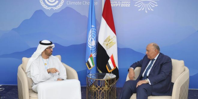 جاء ذلك خلال استقبال شكرى رئيس مؤتمر COP27 ، الدكتور سلطان الجابر وزير الصناعة والتكنولوجيا المتقدمة الإماراتي مبعوث بلاده الخاص لتغير المناخ.
