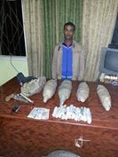 و قد ضبط بحوزته سلاح نارى فرد خرطوش محلي الصنع , و طلقة من ذات العيار , و كمية من نبات البانجو المخدر تزن حوالى 11 كيلو جرام,ومبلغ مالى,وهاتف محمول.