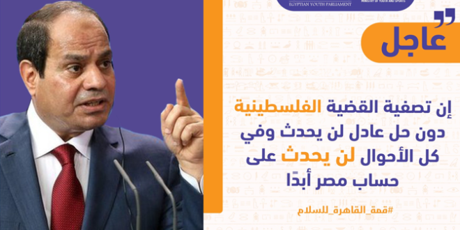 كما ثمن البيان دعوة الرئيس السيسي, لـ”قمة القاهرة للسلام”, التي شهدت استجابة دولية واسعة, حيث توافد الي مقر القمة بالعاصمة الإدارية الجديدة, ملوك ورؤساء وزعماء أكثر من 30دولة حول العالم, الي جانب عدد من المنظمات الدولية المعنية, وذلك من أجل الدعوة للتعايش السلمي والعمل المشترك علي احلال السلام وتجنيب المنطقة والعالم أتون الحرب, والدعوة الي تحرك جاد لاحترام قرارات الشرعية الدولية في اقامة الدولة الفسلطينية وعاصمتها القدسة الشرقية.