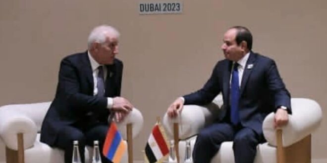 التقى الرئيس عبد الفتاح السيسي اليوم مع الرئيس الأرميني “فاهاجن خاتشاتوريان”، وذلك على هامش انعقاد “الدورة الـ٢٨ لمؤتمر أطراف اتفاقية الأمم المُتحدة الإطارية لتغير المناخ” في دبي.