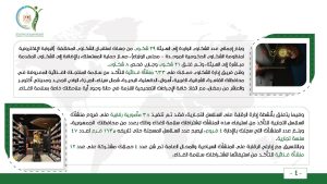 ضبط وسحب عينات ونقص اشتراطات صحية لكمية من المواد الغذائية تقدر بـ 3 طن (لحوم، دواجن، منتجات ألبان) وذلك ضمن الحملات اليومية لضبط الأسواق، وتم سحب عينات للأغذية التي يشتبه في صلاحيتها للاستخدام، والتحفظ على جميع المضبوطات لاتخاذ الإجراءات القانونية، كما تم فحص الأغذية بمراكز التأهيل والإصلاح.