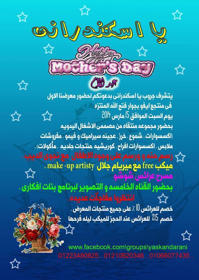 نظم مجموعة من الشباب العاشق للفن بانواعه حيث امنوا بان الفن وسيلة للتغير وطريق بناء جروبا رسميا على صفحات التواصل الاجتماعى يضم مجموعة متميزة من محبى هذا الفن يحمل اسم”اسكندرانى” وتم الاعلان من خلاله على اولى الفالعليات والتى تقرر لها اقامة المعرض الاول يوم 15 من الشهر القادم بمناسبة عيد الام بمنتجع ايفو بالمنتزه وتقول سهام سمير المتحدثة الاعلامية عن المعرض ان الفريق المنظم يضم “سهام سمير وباسم فتحى ومها ابو جبل وايه شرباصى” وسيشارك بالمعرض نخبة منتقاه من مصممى المشغولات اليدوية ” مفروشات واكسسورات ومنتجات جلدية وماكولات وشموع ومسرح عرائس وغيرها من الوان الفنون التى تهم شريحة وقطاع عريض من الشعب والذى اصبح وسيلة للاسترخاء النفسى بعيدا عن الصخب السياسى الذى اوجد حالة من التوتر والتشنج لدى المواطن المصرى واضافت ان التلفزيون السكندرى سيقوم بالتغطية الاعلامية