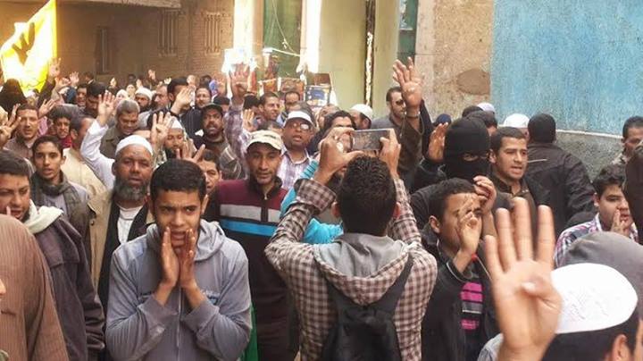 انطلقت المسيرة من أمام مسجد الرحمن بالقرية مرددة الهتافات المنددة بالانقلاب ومؤيدة للرئيس المعزول محمد مرسي ، وسط هتافات “بالروح بالدم نفديك يااسلام ، والداخلية آخر خيبة حبسوا بناتنا فى التخشيبة ، ولا بنخرب ولا بنكسر يسقط يسقط حكم العسكر”.
