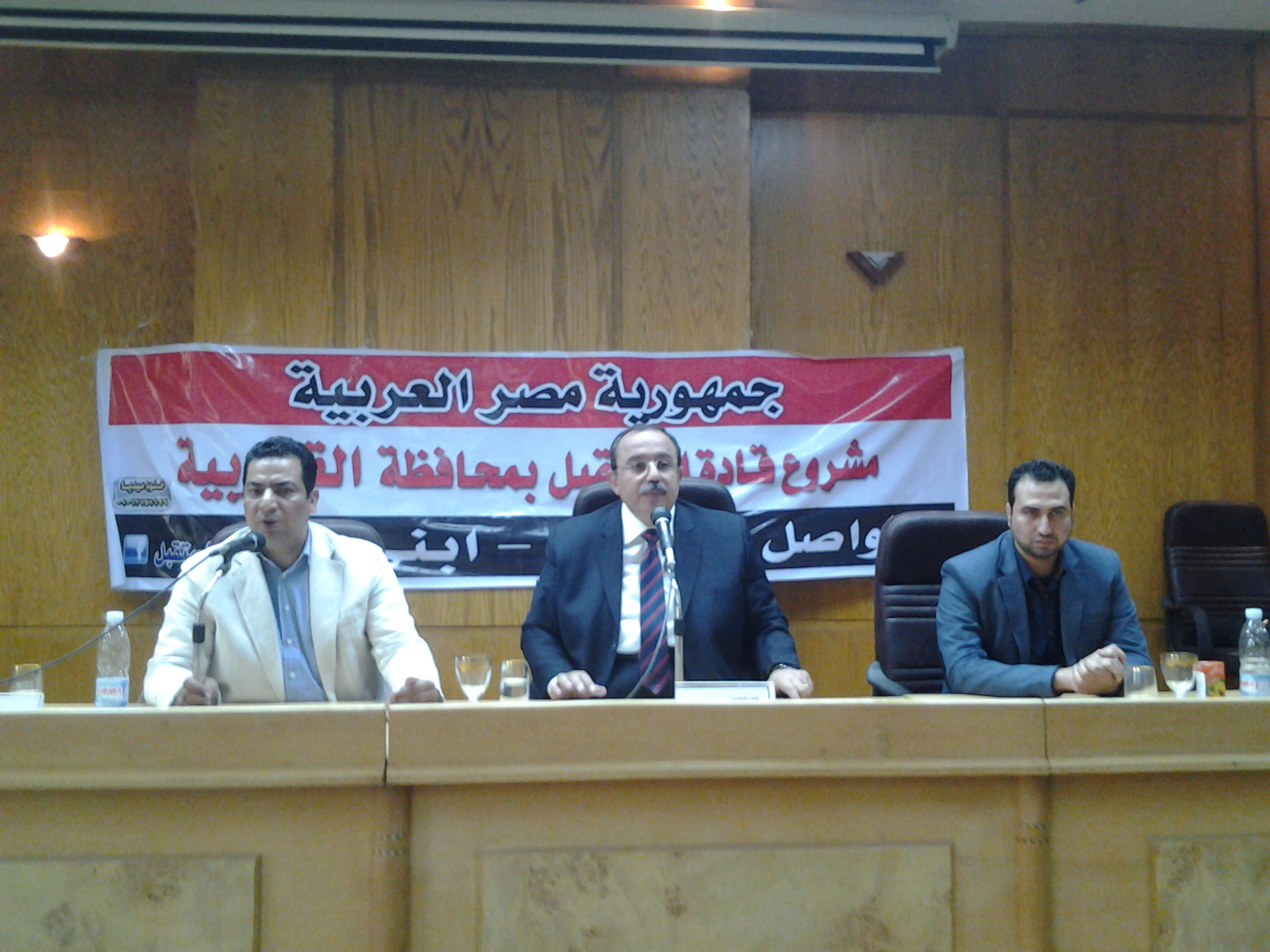 قاطع عدد من شباب وممثلي المدن بمحافظة القليوبية الندوة التي دعت لها ” جبهة قادة المستقبل ” بحضور محمد عبدالظاهر محافظ القليوبية و عبدالغني هندي المنسق العام للجبهة و محمود عفيفي المتحدث الرسمي السابق بحركة 6 إبريل لسوء تنظيم والخروج عن هدف الندوة التي تم دعوة الشباب من أجلها وكان الهدف من تلك فتح حوار من أجل مناقشة مستقبل الشباب في مصر .