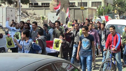 نظم العشرات من طلاب أعضاء جماعة الإخوان المحظورة مسيرة أمام كلية الطب البشري ببنها وطافت عدد من الشوارع المحيطة بالكلية احتجاجا على ما وصفوه بالإنقلاب العسكري والتنديد بإعتقال طلاب الجامعة .