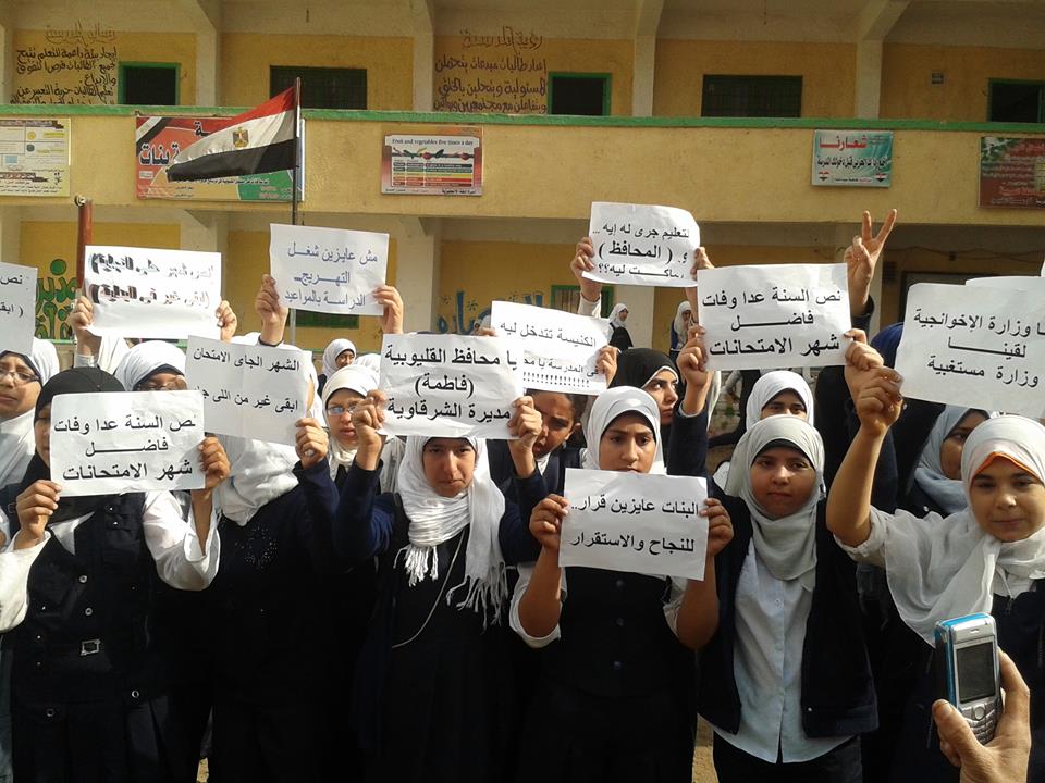 نظم طالبات مدرسة الشرقاوية بشبرا الخيمة صباح اليوم الاربعاء وقفة أحتجاجية أمام المدرسة للمطالبة بالإبقاء على فاطمة عبدالفتاح مديرية المدرسة ، بعد أن صدر قرار بإيجاد مدير جديد للمدرسة بدلا منها قبل أنتهاء العام الدراسي .
