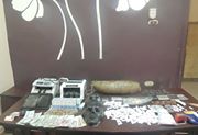 و تم ضبط سلاح نارى بندقية ألية عيار 7.62 × 39 , و خزينة بداخلها عدد 6 طلقة من نفس العيار , و سلاح نارى بندقية خرطوش تركى , و عدد 40 طلقة من نفس العيار , و عدد 7 خزينة ألية بعدد 125 طلقة عيار7.62 × 39 , و قنبلة غاز ماركة 518 , و كمية من مسحوق الهيروين المخدر تزن حوالى 500 جرام , و عدد 8 ميزان حساس , و مبلغ مالى 750 جنيه .