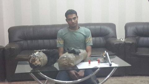 و ضبط بحوزته سلاح نارى فرد خرطوش محلى الصنع , و طلقتين من نفس العيار , و كمية من نبات البانجو المخدر تزن حوالى 2.5 كيلو جرام , و مبلغ مالى , و هاتف محمول .