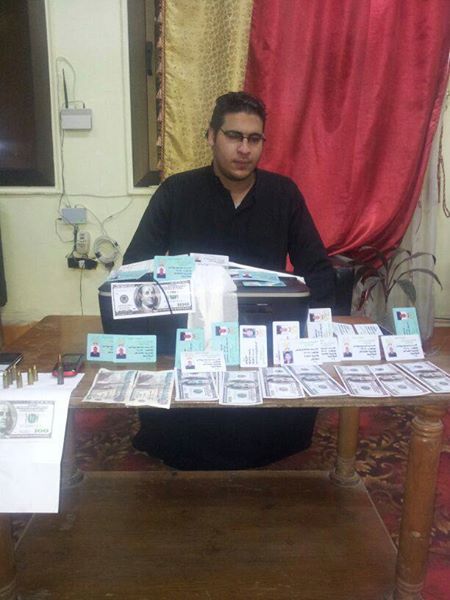 تمكن ضباط مباحث مركز شرطة كفر شكر من ضبط المدعو ” أحمد.م.ج ” 29 سنة – عاطل , و مقيم بعزبة الأدهم – دائرة المركز , و بحوزته 80 قرص مخدر , و 6 طلقات عيار 9 مم , و طلقة عيار 7.62 × 39 مم , و 20 كارنيه مزور لكلية الشرطة , و 10 ورقات فئة 10 دولار مزورة , و ورقة فئة 200 جنيه مزورة , و وقة بيضاء مرسوم عليها ورقة الدولار , و مبلغ مالى , و هاتفين محمول , و طابعة ألوان .
