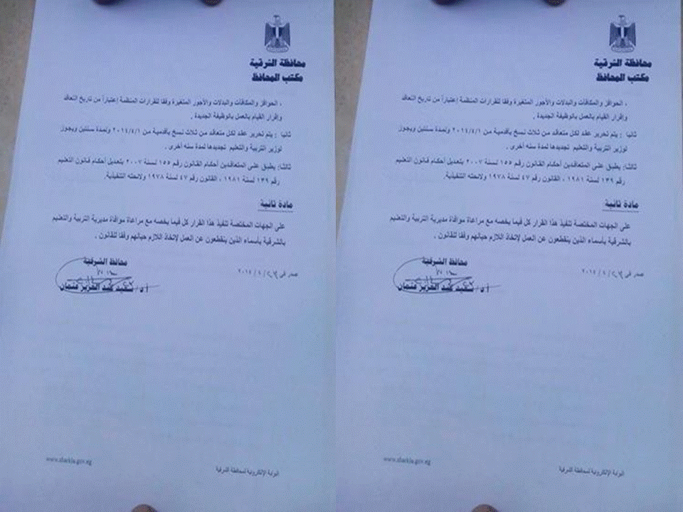 انتهت أزمة 19 ألفا من المتعاقدين بالتربية والتعليم بالشرقية بعد تصديق المحافظ الدكتور سعيد عبد العزيز على قرار تعيينهم .
