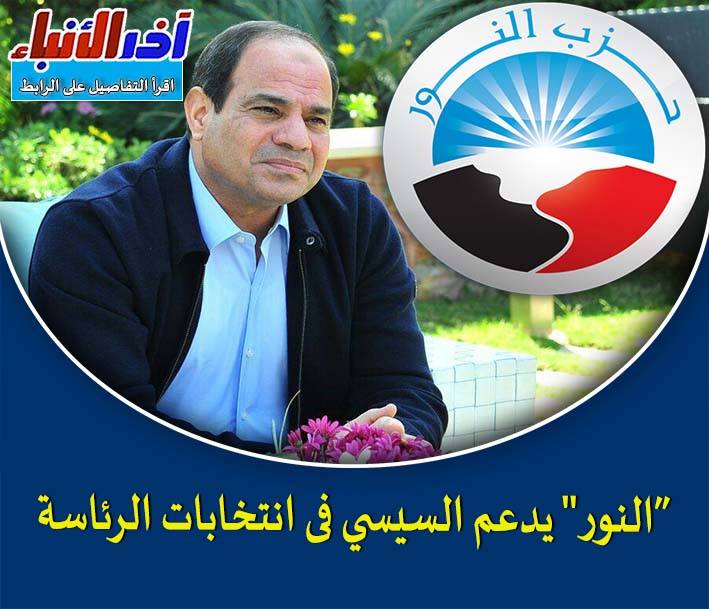 أعلن حزب النور اليوم السبت دعمه المشير عبد الفتاح السيسي في الانتخابات الرئاسية.