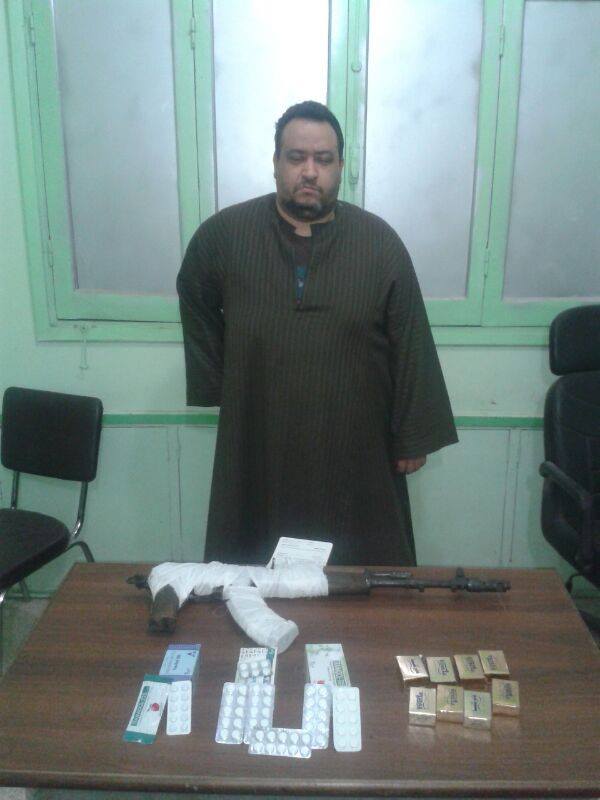 ” أحمد . ع . ع ” , 40 عاماً , موظف , مقيم بالغنايم قبلى و بحوزته بندقية آلية و 245 قرص من العقاقير المخدرة , بقصد الإتجار .