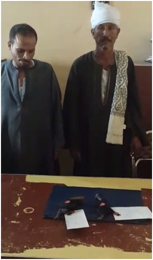فقد تم ضبط كلاً من ” محمد . ذ . ج . م ” , 57 عاماً , موظف , مقيم بقرية النخيلة و بحوزته فرد رصاص محلى الصنع و ” فانوس . ز . د . ف ” , 32 عاماً , حاصل على دبلوم , مقيم بقرية دوينة و بحوزته فرد رصاص محلى الصنع .