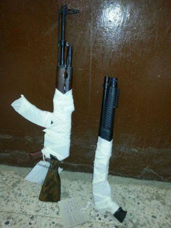 أسفرت جهود الحملة عن ضبط بندقية آلية عيار 7.62×39 مطموسة الأرقام بمنزل المأذون بتفتيشه الهارب ” حمادة . ع . ع ” , 29 عاماً , سائق , و كذلك ضبط بندقية خرطوش تحمل رقم 27102/13 بمنزل المأذون بتفتيشه الهارب ” ياسر . ع . ع ” , 30 عاماً , سائق , مقيمان بالمعابدة الشرقية .