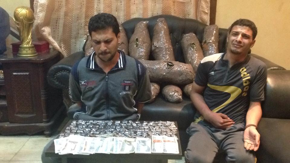 وأحمد محمود علي محمد وشهرته المتع20سنة عاطل، ومقيم الشعراء وبحوزتهما 50  كيلو بانجو، و300جرام هيروين ومبلغ1950جنية، ومطواة قرن غزال .