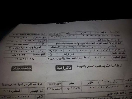 يذكر ان عدد من النشطاء على موقع التواصل الاجتماعي قاموا بنشر صوره لفاتورة المياه من داخل مطبعة شركة المياه بتكلفه 69 إلف جنيها وتناول منها سخرية.